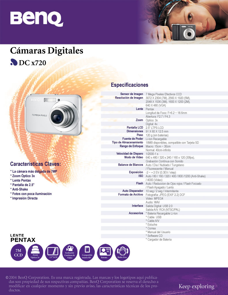 Cámaras Benq Mini Migo Mochila para Laptop Memorias Kingston Teclado Virtual Láser Mouse Biométrico USB Creative Zen V Plus