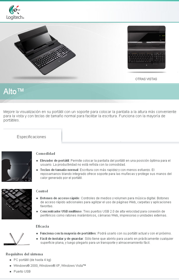 La solución ideal para los problemas de ergonomía de los teclados de lap top. Un soporte que levanta tu equipo para evitar dolores de espalda y cuello unido a un teclado estándar con el que escribir y trabajar será mucho más sencillo.
